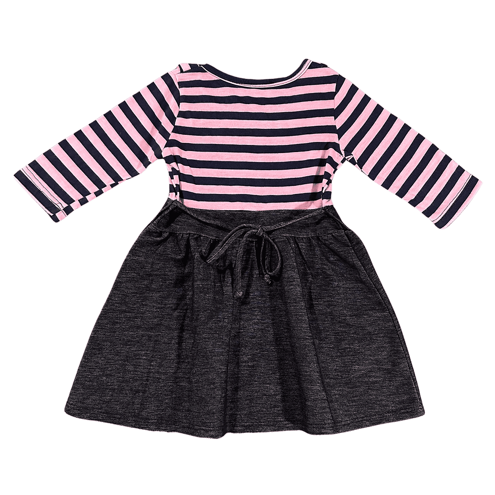 Girl's 3T Pink Striped Tie Back Dress With Stretch Denim Skirt - 00950