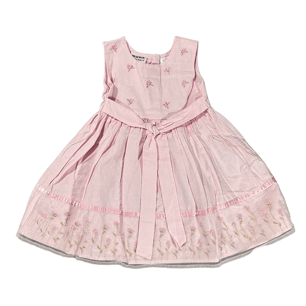 Blueberi Boulevard Girl’s 3T Floral Embroidered Tie Front Linen Dress - 01089