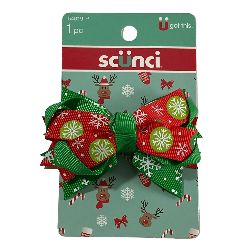 Scunci Girls Christmas Themed Bow Hair Clip New - A1308